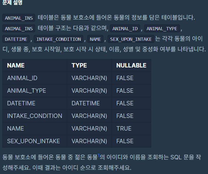 | 코딩테스트 연습 > SELECT > 동물의 아이디와 이름 (0) | 2020.07.23 |