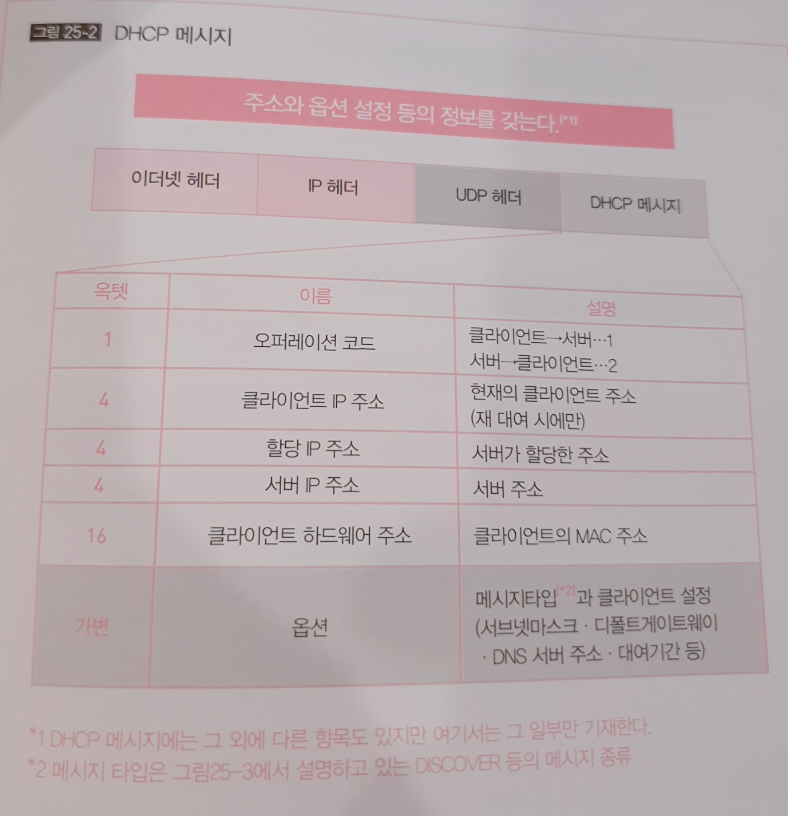 DHCP 메시지와 그 동작, 옵션 중요