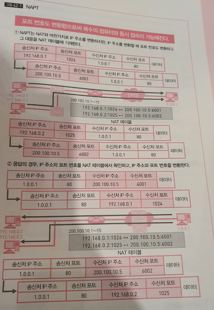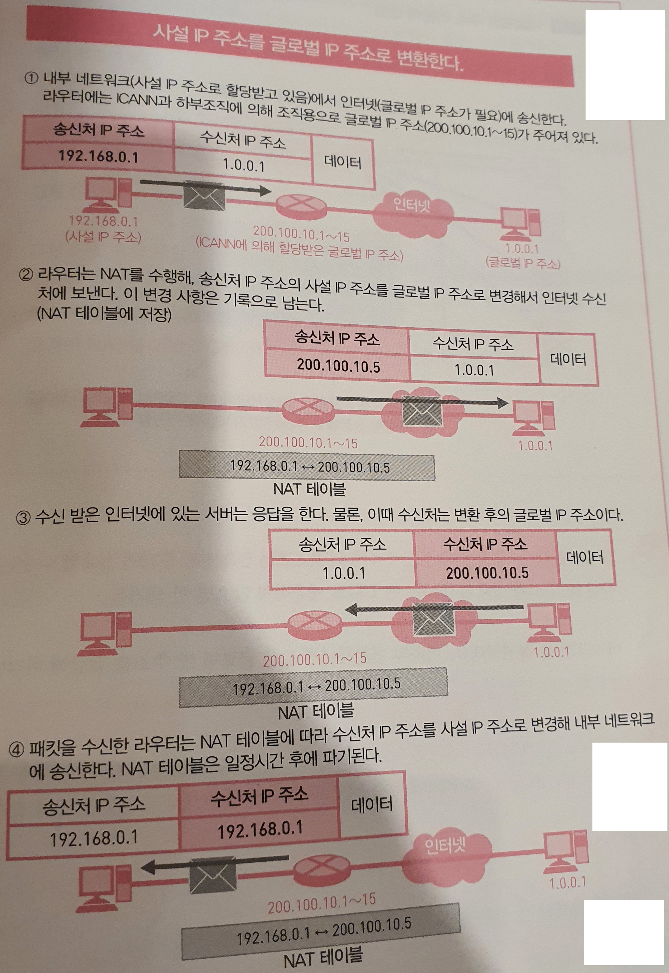 그리고 NAT에 의해 내부 네트워크에서 할당한 사설 IP 주소를 글로벌 IP 주소로 변환