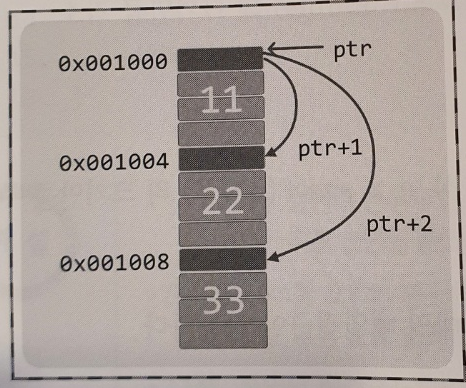 int * ptr=arr;이라면 ptr+1은 arr[1]