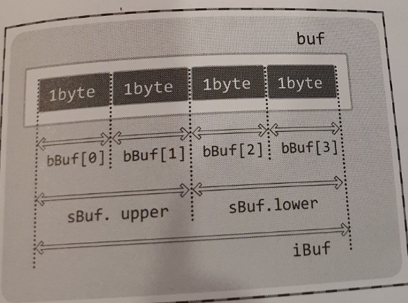 printf("하위 2바이트: %u \n", buf.sBuf.lower);