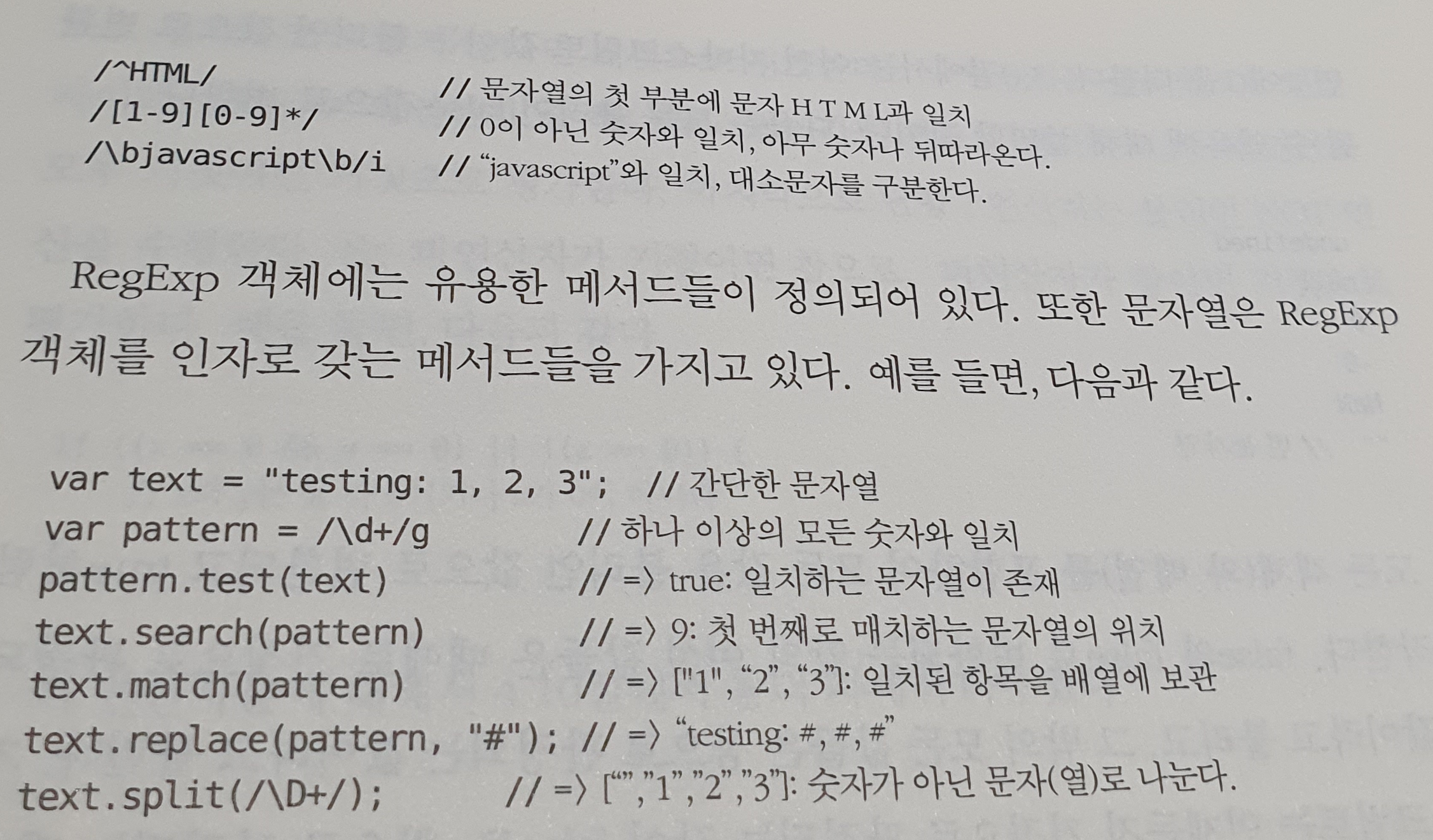 RegExp가 자스의 기본 데이터 타입은 아니지만, 자스는 정규식에 대한 리터럴 문법을 가지고 있고 이는 자스 프로그램을 바로 해석될 수 잇다.