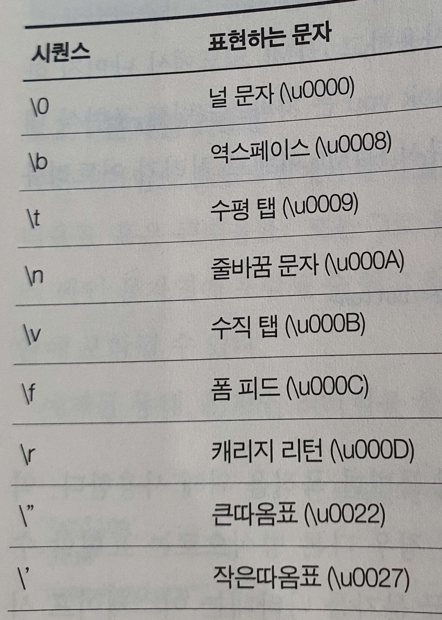 문자열 리터럴의 이스케이프 문자열