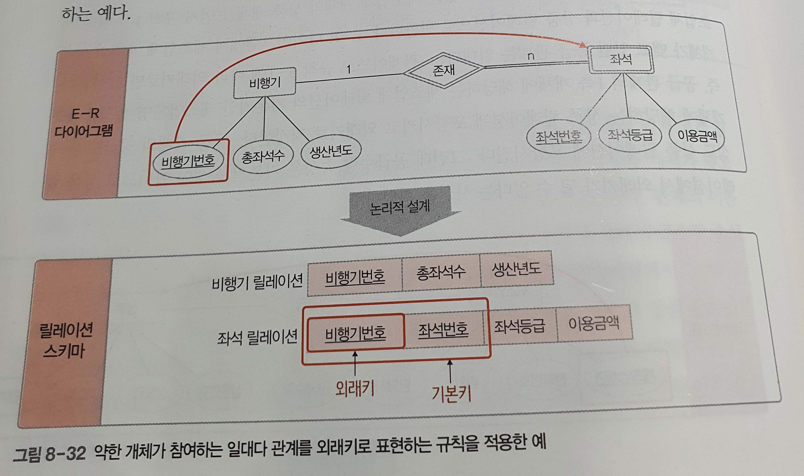 일반 개체들이 참여하는 일대다 관계와 다른 점은, 외래키가 포함된 릴레이션에서 이 외래키를 포함하여 기본키를 지정해야 한다는 점이다.