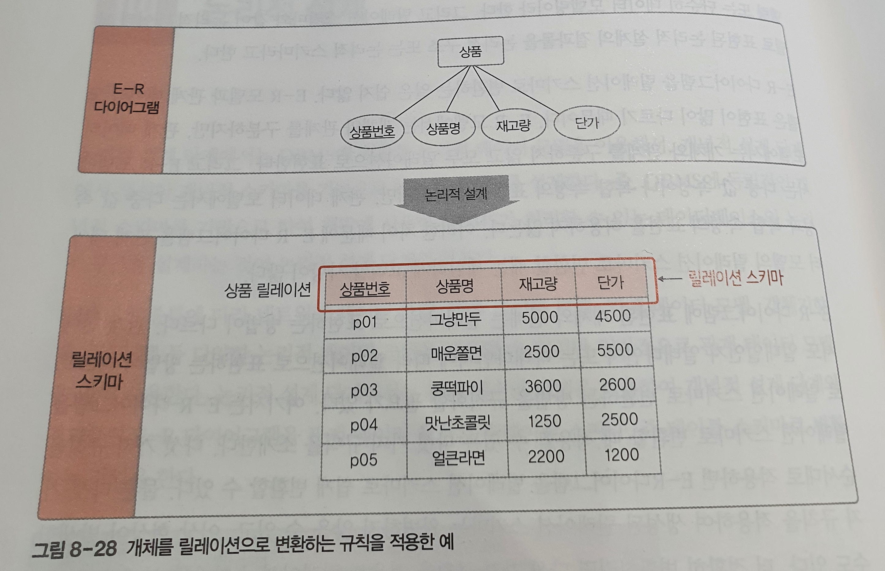 결과물 : 논리적 싀마(릴레이션 스키마)