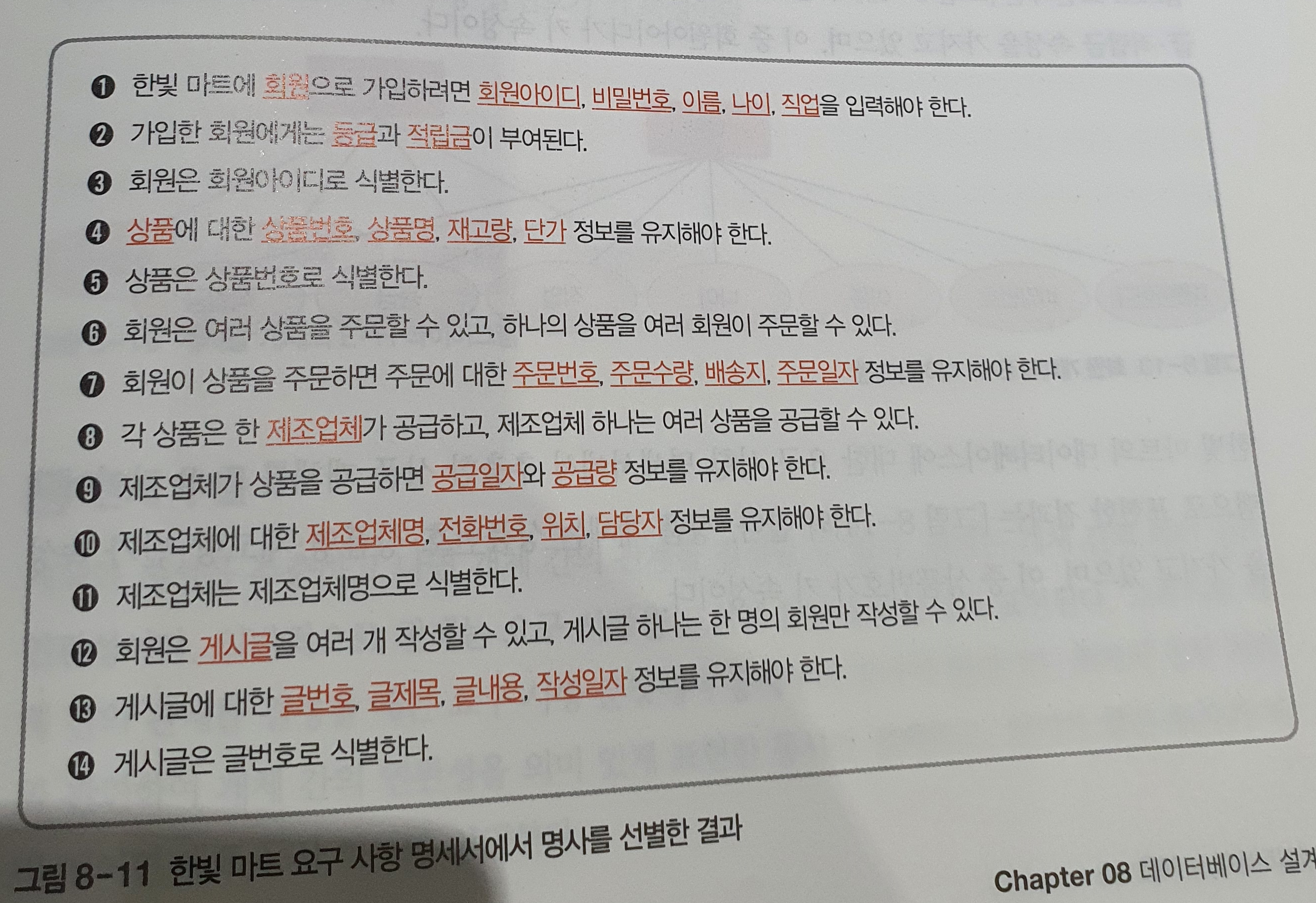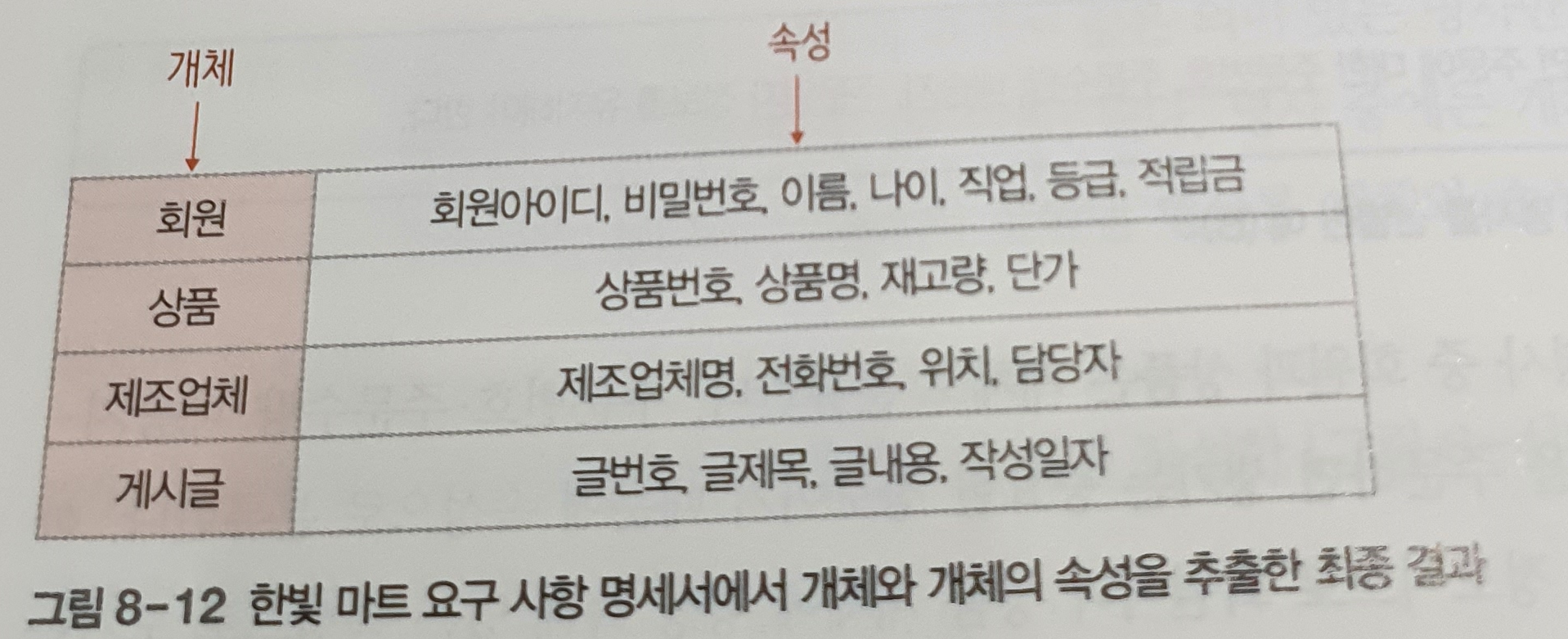 ex) 한빛마트 개체, 속성 추출하기