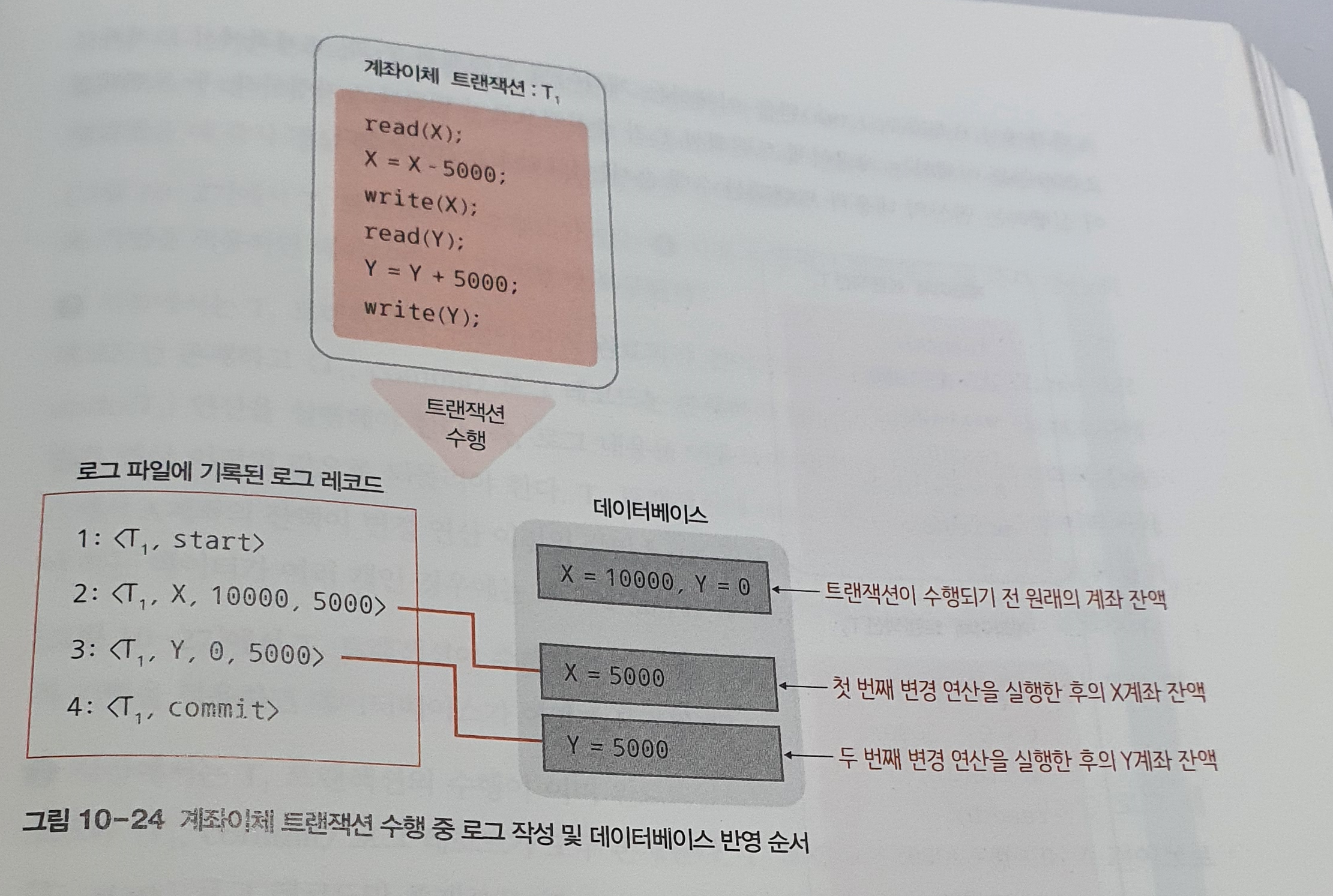 일반적으로 데이터베이스는 비휘발성 저장 장치인 디스크에 상주한다. 하지만 트랜잭션이 데이터베이스의 데이터를 처리하려면, 데이터를 디스크에서 메인 메모리로 가져와 이를 처리한 후 그 결과를 다시 디스크로 보내는 작업이 필요