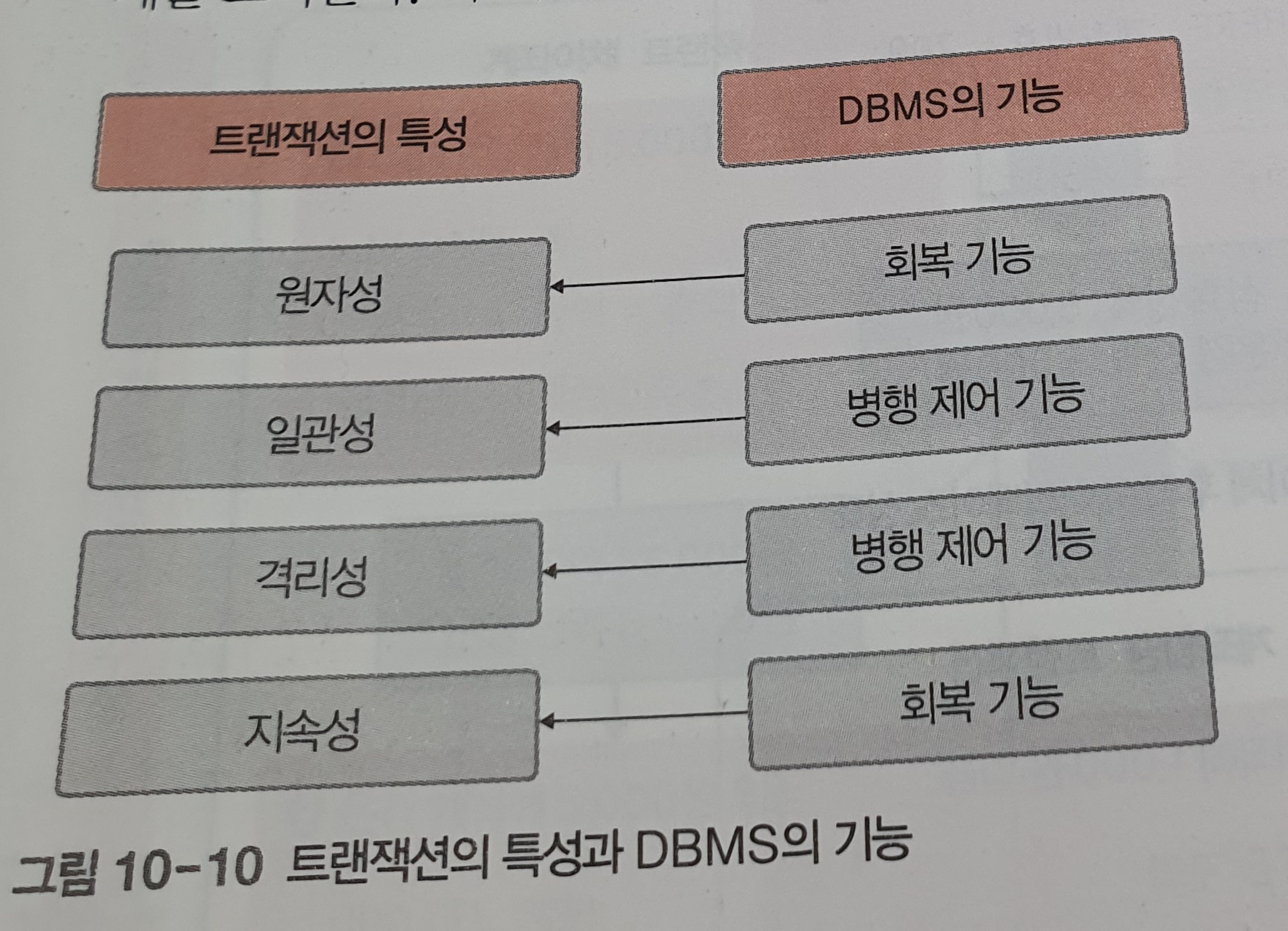 DBMS는 트랜젝션의 네 가지 특성을 보장하기 위한 지원 기능을 제공한다.