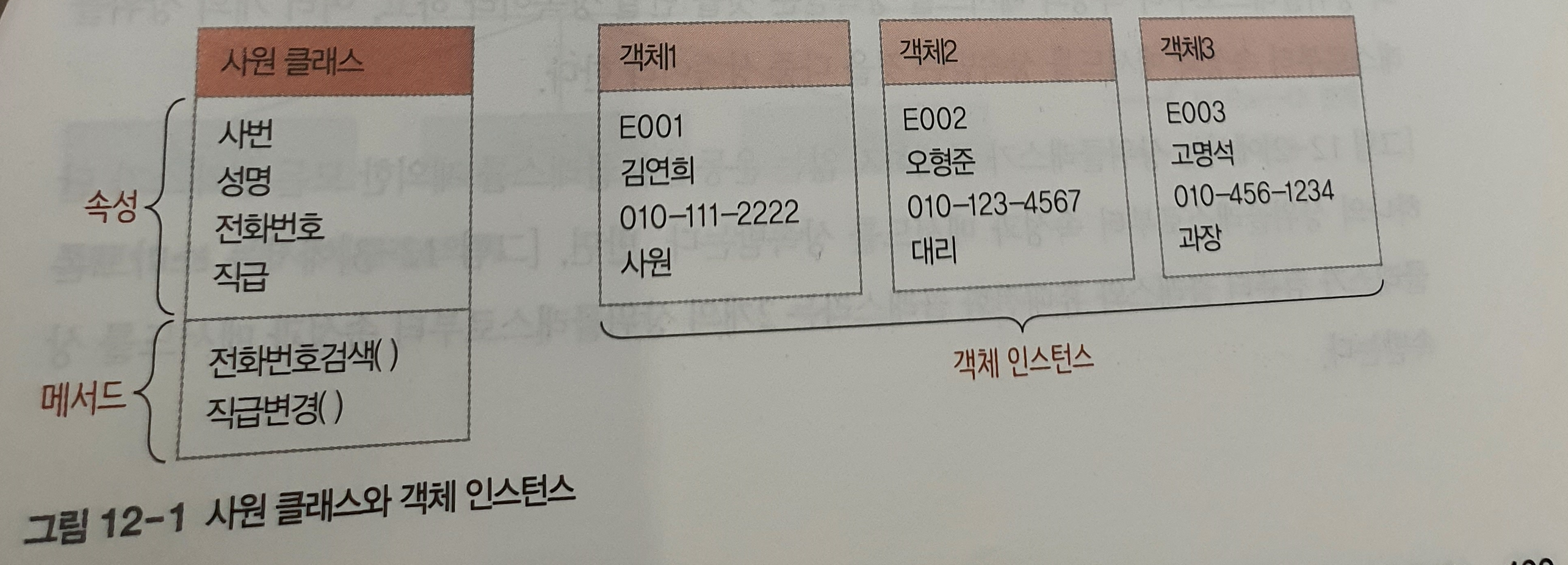 클래스는 속성과 메서드를 공유하는 유사한 성질의 객체들을 하나로 그룹화한 것이다. 객체는 클래스의 구성원으로, 클래스 인스턴스, 객체 인스턴스라고도 한다. 클래스 내부에는 해당 클래스의 객체를 위한 데이터 구조와 메서드 구현에 관한 세부 사항을 기술한다.