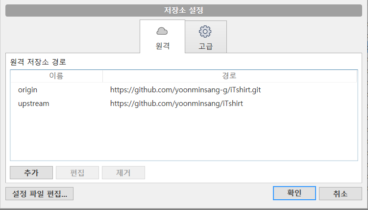 이제 원격을 누르면 origin과 upstream이 나온다.