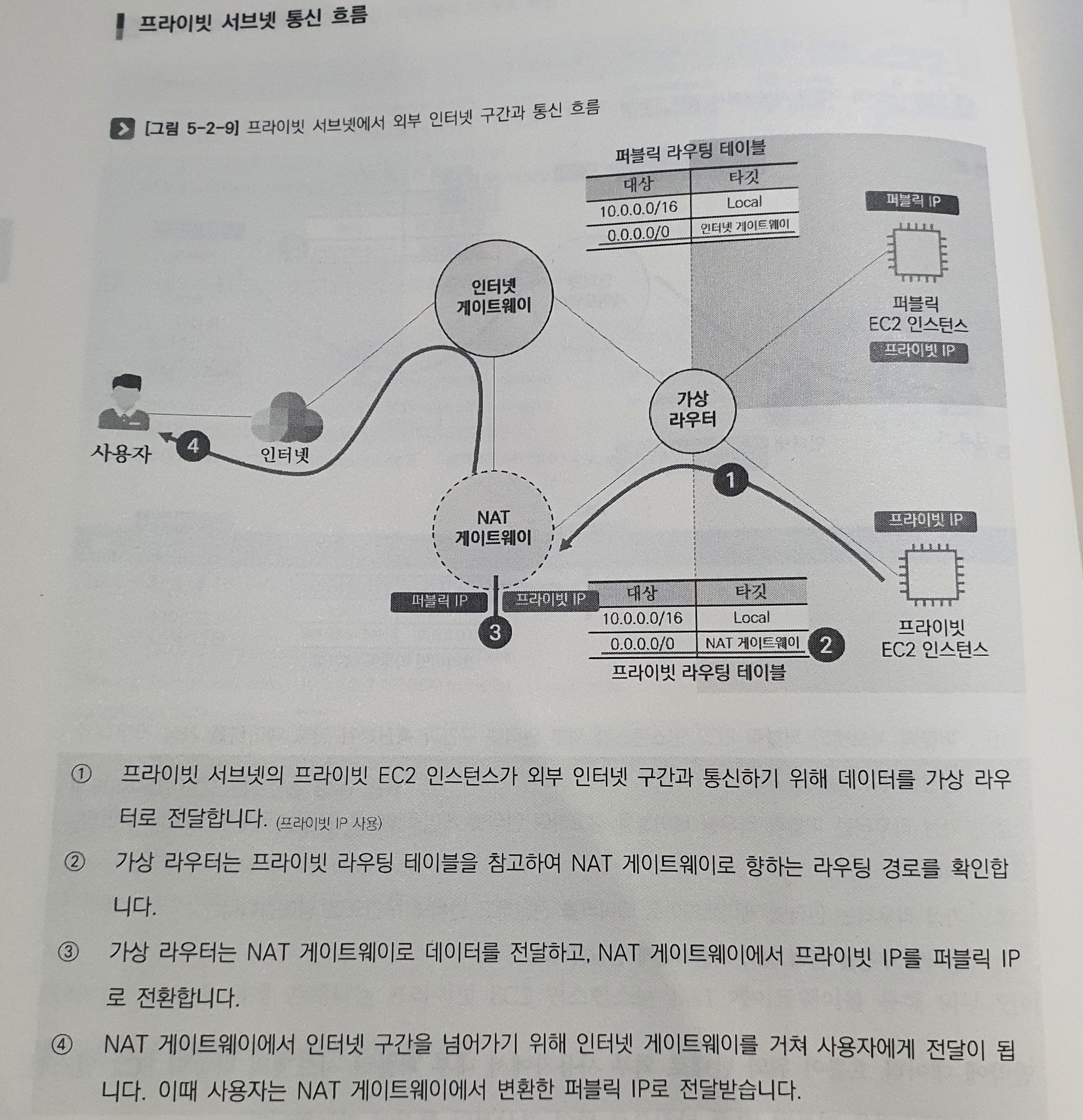 (AWS에서 NAT 기능은 NAT 게이트웨이와 NAT 인스턴스로 구분 짓고 있다. 이번 장에서는 NAT 게이트웨이만 언급, NAT 인스턴스는 4장에서)